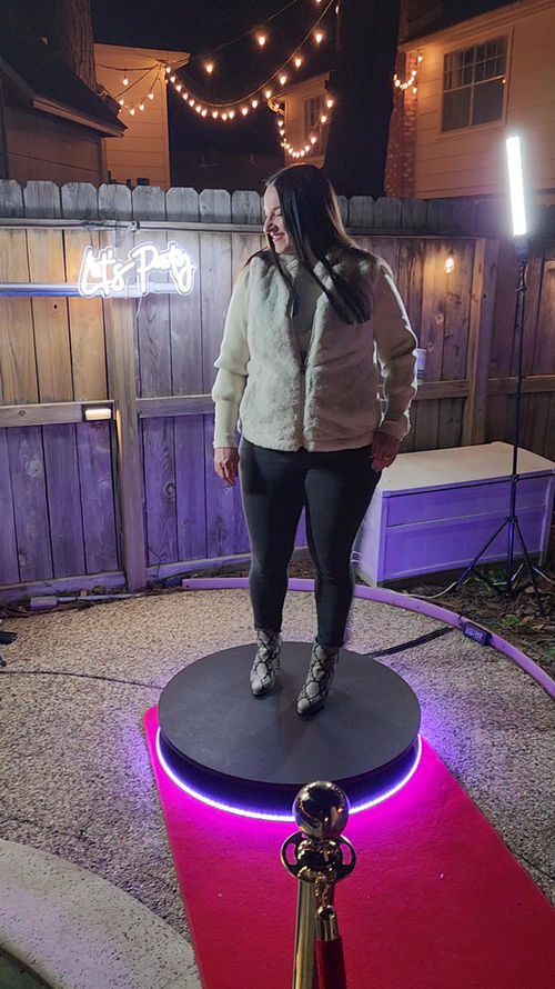 I&M Presents the 360 Photobooth. This booth bring glamour to life with its 36" video stage and circular design, you and your friends will have a great time dancing and posing in front of the camera. It truly is an experience of it's kind!